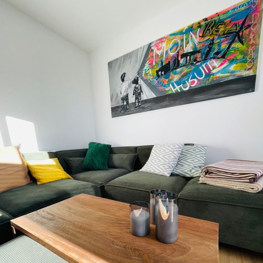Das Haus wurde 2 1/2 Jahre aufwendig saniert und erstrahlt jetzt modern, klar und gemütlich. Ein großes gemütliches Schlafzimmer, ein modernes Bad, ein kleines Gäste-WC und ein offener Wohn- und Essbereich laden zum erholen ein. Das Zentrum von Husum befindet sich ca 30 Gehminuten entfernt, während man in 10 Minuten auf dem Deich, mit wunderschönem Nordseeblick, steht.