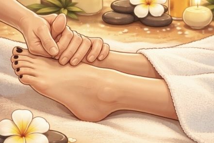Die Fußreflexzonenmassage aktiviert gezielt bestimmte Zonen an den Füßen, die mit dem gesamten Körper in Verbindung stehen. Sanfter Druck fördert die Durchblutung, unterstützt die Entspannung und kann das allgemeine Wohlbefinden steigern.